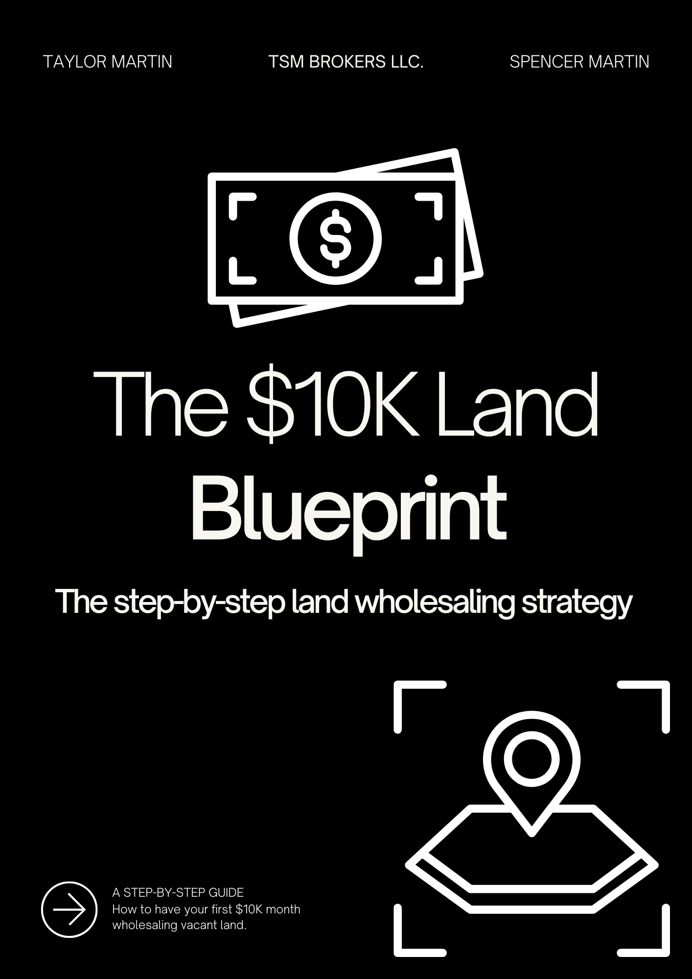 The $10K Land Blueprint is your comprehensive step-by-step guide to vacant land wholesaling. This ebook distills years of industry experience into actionable strategies, revealing the insider tips and tricks we wish we'd known when starting out. Whether you're new to land investing or looking to refine your approach, you'll discover proven methods to identify opportunities, negotiate deals, and build a profitable wholesaling business. Learn from real-world insights that cut through the noise and accelerate your path to success in this lucrative niche.